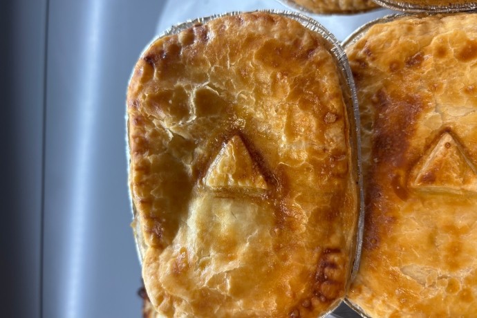 Our homemade chicken and mushroom pies combine tender chicken breasts with mushrooms and creamy sauce – which we top off with puff pastry. These pies also come in a larger size so you can enjoy them with your family. The pie’s key ingredients complement each other well – letting both flavours shine.